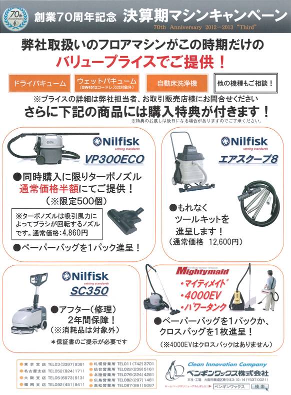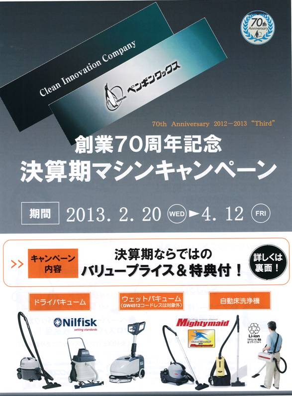 【お得な情報】ペンギンワックス操業70周年決算期マシンキャンペーン