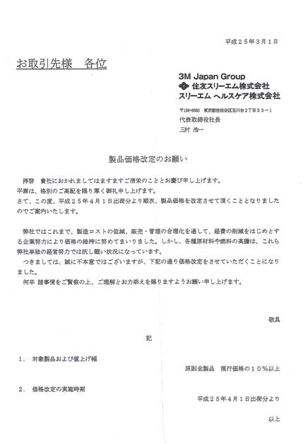 (住友スリーエムの改定時期は4/1ですが、当社販売分に関しましては5/1~とさせて頂きます。)