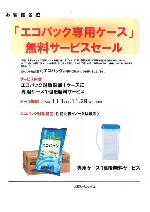 ■内容 コニシ社の床用ワックス「エコパック」対象商品をご購入頂いた方に専用ケースを
