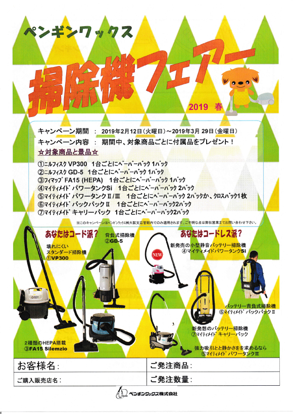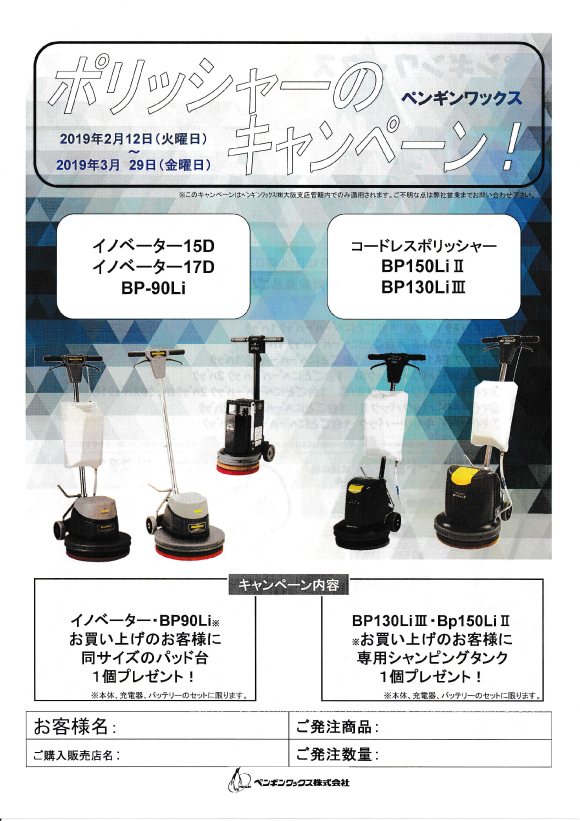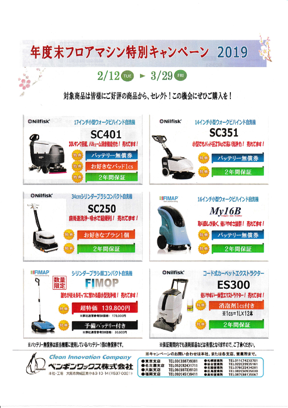 ペンギンワックス社:年度末フロアマシン特別キャンペーン2019