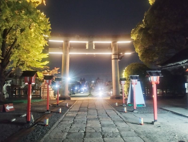 8日の夜に事務所に戻ってきて、搬出してきた機械を降ろしていたのですが、いつになく人が溢れていて、事務所の前の狭い通りを人と車が頻繁に行き来しているので何かと思えば、近所にある豊国神社が夜のアートイベントを開催していたようです。