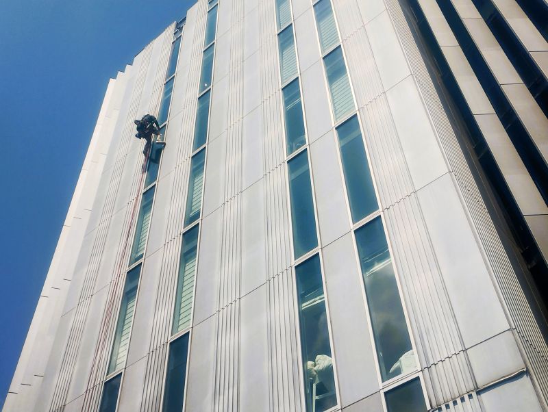 本日高所のガラス清掃。